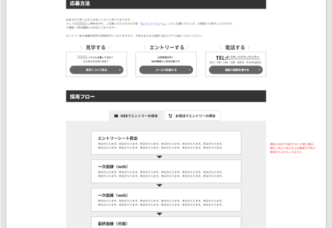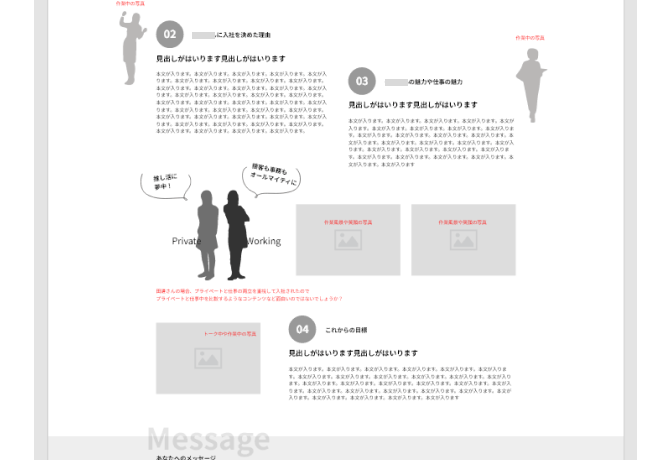 既存サイトの新卒採用ページのご提案のためのWF作成をご依頼いただきました。