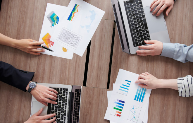 プロジェクトに必要な資料(例えば進行管理表、提案書、進捗報告書など)の作成をサポートするほか、スタッフ数やチーム構成についてもアドバイスを行います。
